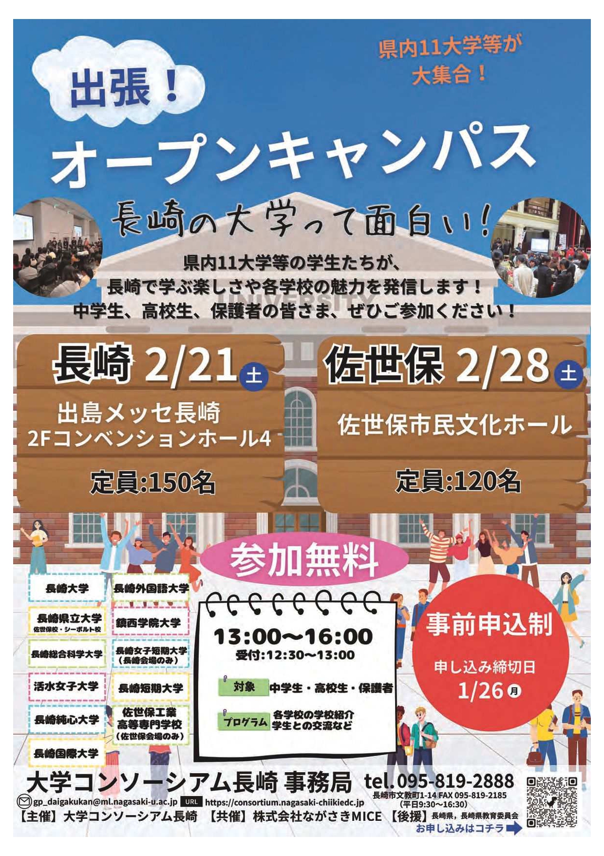TEL:095-801-0530 (電話受付時間:9:00~17:00) FAX:095-823-0888 E-mail:info@dejima-messe.jp