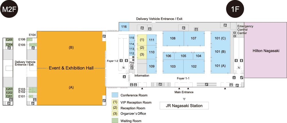 | Capacity | [Classroom style] Approx. 2,664 seats (Whole area) [Theater style] Approx. 2,160 seats (1/2 area) |